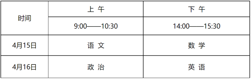 1.取得試點高校文化課單考資格的考生,須參加全國統(tǒng)一組織的“運動訓練、武術(shù)與民族傳統(tǒng)體育專業(yè)”招生文化考試(報名辦法詳見“中國運動文化教育網(wǎng)”或“體教聯(lián)盟 APP”)??荚嚂r間及科目如下(考點及有關事宜另行通知):