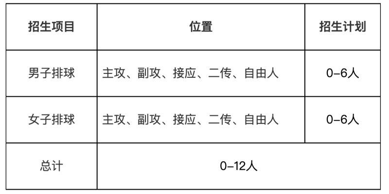 2.報考我校高水平運動隊排球項目的考生應(yīng)符合中國大學(xué)生體育協(xié)會主辦的CUVA中國大學(xué)生排球聯(lián)賽等比賽的參賽資格。曾在國家體育總局排球運動管理中心、中國排球協(xié)會履行注冊或參加競技系列賽事(含沙排)的考生不能報考。其中,高中階段以學(xué)校名義參加賽事的不受此限。我校不招收沙灘排球項目運動員考生。