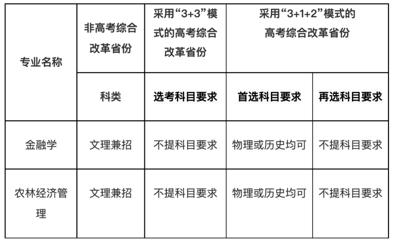 擬報考沈陽農(nóng)業(yè)大學(xué)高水平運動隊的考生,須達到或滿足生源所在省級招生考試機構(gòu)的規(guī)定要求。我校招生專業(yè)(類)、科類及選考科目要求如下: