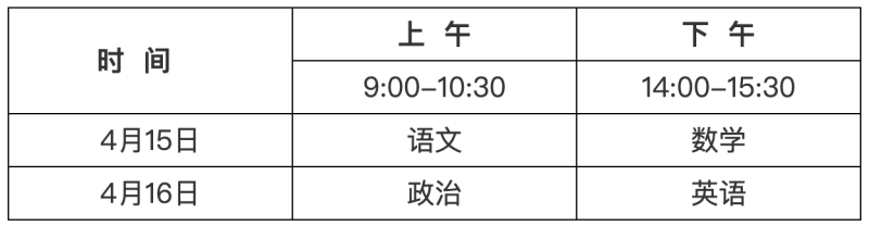 考生須參加高考報名所在地省級招生考試機構組織的文化考試??荚嚳颇浚赫Z文、數(shù)學、政治、英語四科,每科滿分為150分,四科滿分600分。