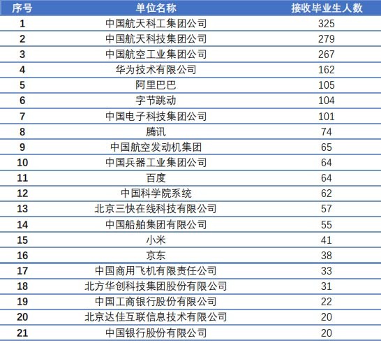 在重點就業(yè)單位名單,除了航天航空相關(guān)行業(yè),亦有華為、阿里巴巴、字節(jié)跳動等重要民企。