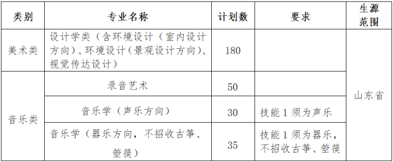 報考我校美術類專業(yè)和音樂類專業(yè)的考生須參加山東省2023年普通高等學校招生藝術類專業(yè)統(tǒng)一考試,且專業(yè)成績和高考文化成績均達到相應本科合格線。