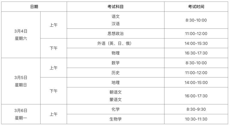 經研究,定于2023年3月4日至6日舉行我省1月普通高中學業(yè)水平合格性考試。具體時間安排如下: