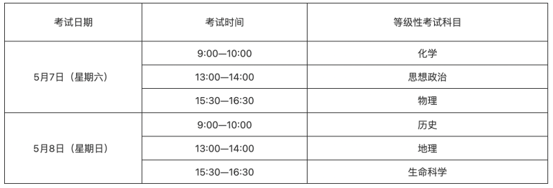 5月等級(jí)性考試設(shè)思想政治、歷史、地理、物理、化學(xué)、生命科學(xué)6門科目??忌筛鶕?jù)高校招生要求和自身興趣特長(zhǎng),在6門等級(jí)性考試科目中自主選擇3門參加考試。