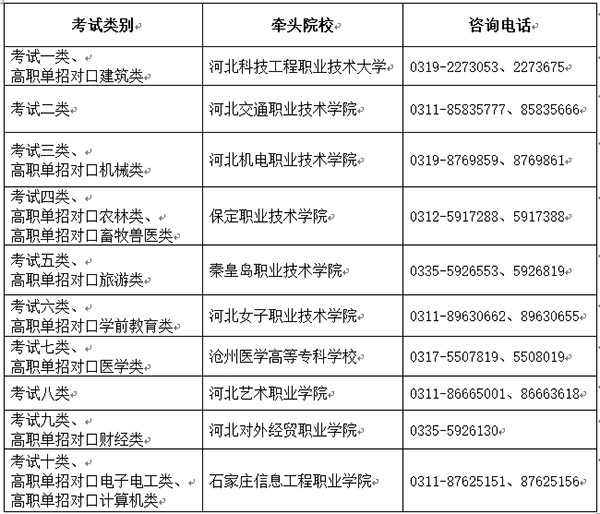 各考試類牽頭院校咨詢電話: