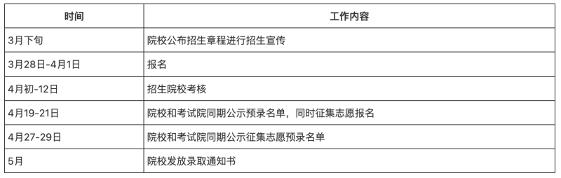 北京市2022年高等職業(yè)教育自主招生工作日程安排