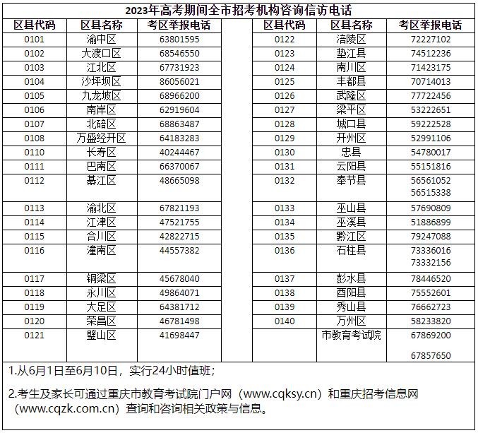 重慶市2023年高考期間招考機(jī)構(gòu)咨詢信訪電話號碼是多少