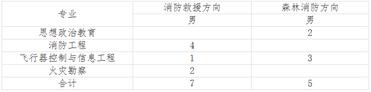 中國消防救援學(xué)院計劃在甘肅省招收普通高中畢業(yè)生12名,其中消防救援7人,森林消防5人。
