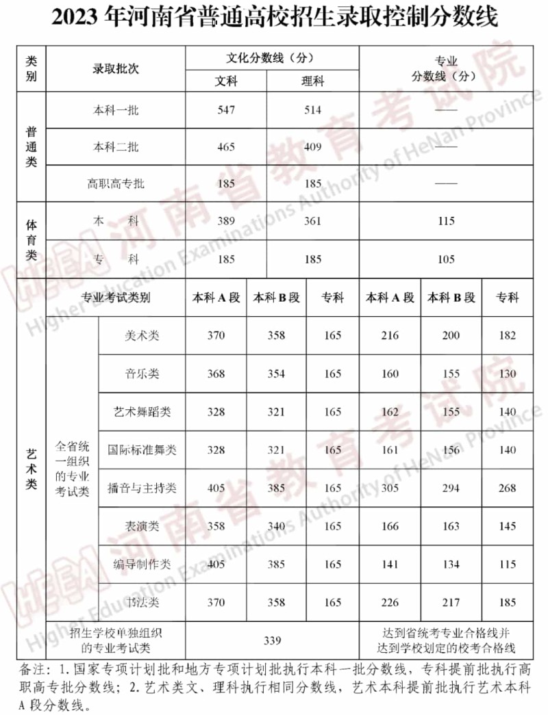 河南省2023年普通高校招生錄取控制分?jǐn)?shù)線是多少