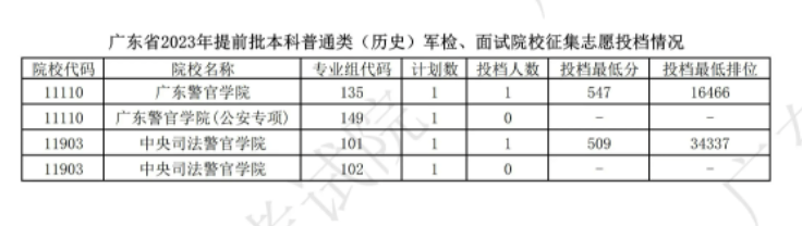 廣東省2023年提前批本科普通類歷史組軍檢面試院校分?jǐn)?shù)線是多少