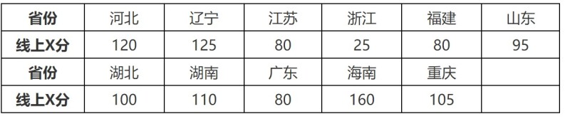 高考綜合改革省份獲得我校高校專項計劃資格的考生,高考成績(不含任何政策性加分)達到所在省相關(guān)特殊類型錄取控制分數(shù)線上一定分值,予以錄取。具體分值如下: