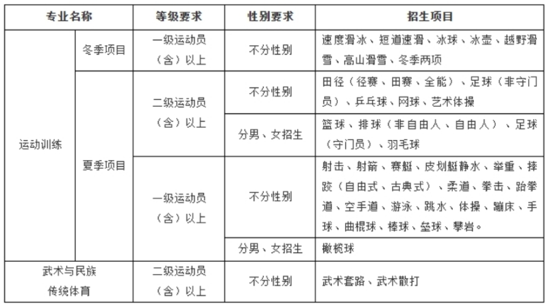 注:被我校錄取的考生,入校后學(xué)習(xí)的運動項目需在學(xué)校開設(shè)的項目中選擇。