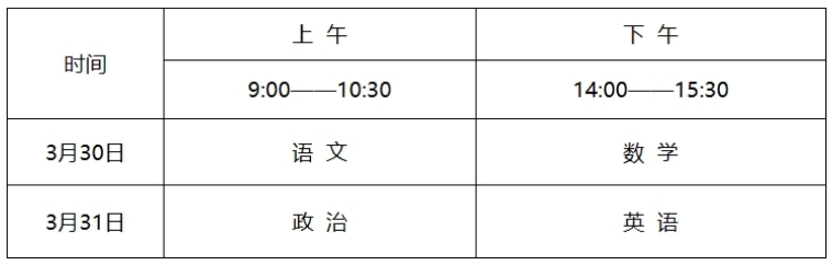 1.文化考試科目為語文、數(shù)學(xué)、政治、英語四科,每科滿分為150分,四科滿分為600分,使用國家通用語言文字作答。