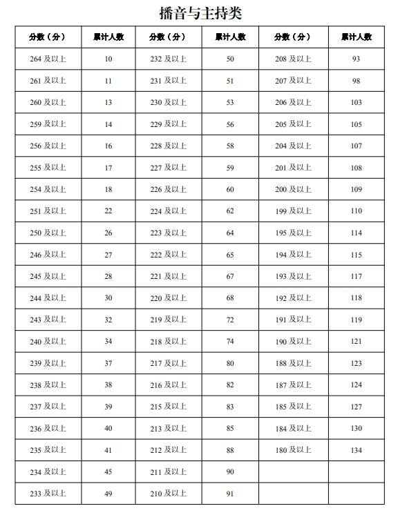 寧夏2024年高校招生藝考播音與主持類(lèi)一分一段統(tǒng)計(jì)表公布