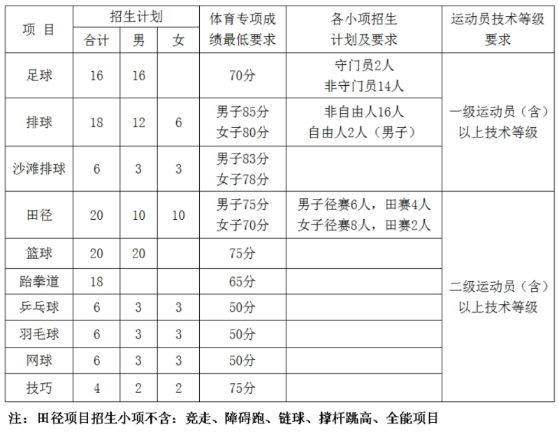 3.根據(jù)國家相關規(guī)定,運動訓練專業(yè)實行提前單獨錄取,考生如已被我校運動訓練專業(yè)錄取,不得放棄錄取資格,同時不再參加普通高考及高校高水平運動隊的錄取。