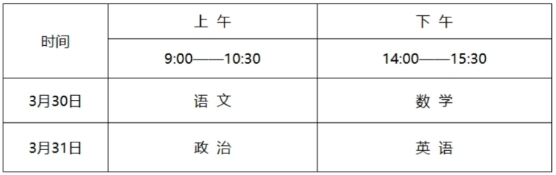 考試科目:語文、數(shù)學(xué)、政治、英語四科,每科滿分為150分,四科總分為600分,使用國家通用語言文字作答。