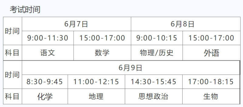 高考總共有3天,從6月7日開(kāi)始,至6月9日結(jié)束。
