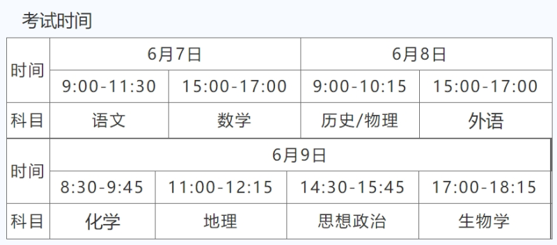 高考總共有3天,從6月7日開始,至6月9日結束。