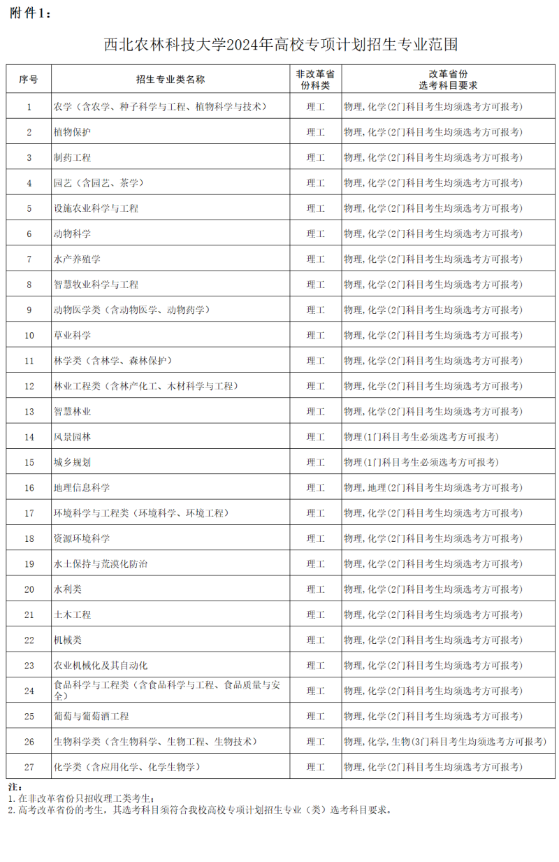 西北農(nóng)林科技大學(xué)2024年高校專項(xiàng)計(jì)劃招生專業(yè)有哪些?