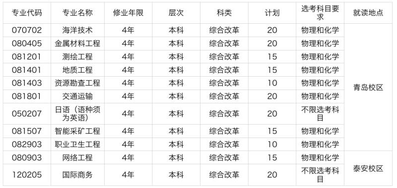 學校綜合評價招生面向山東省內夏季高考生源,總計劃數為180人,招生計劃如下表: