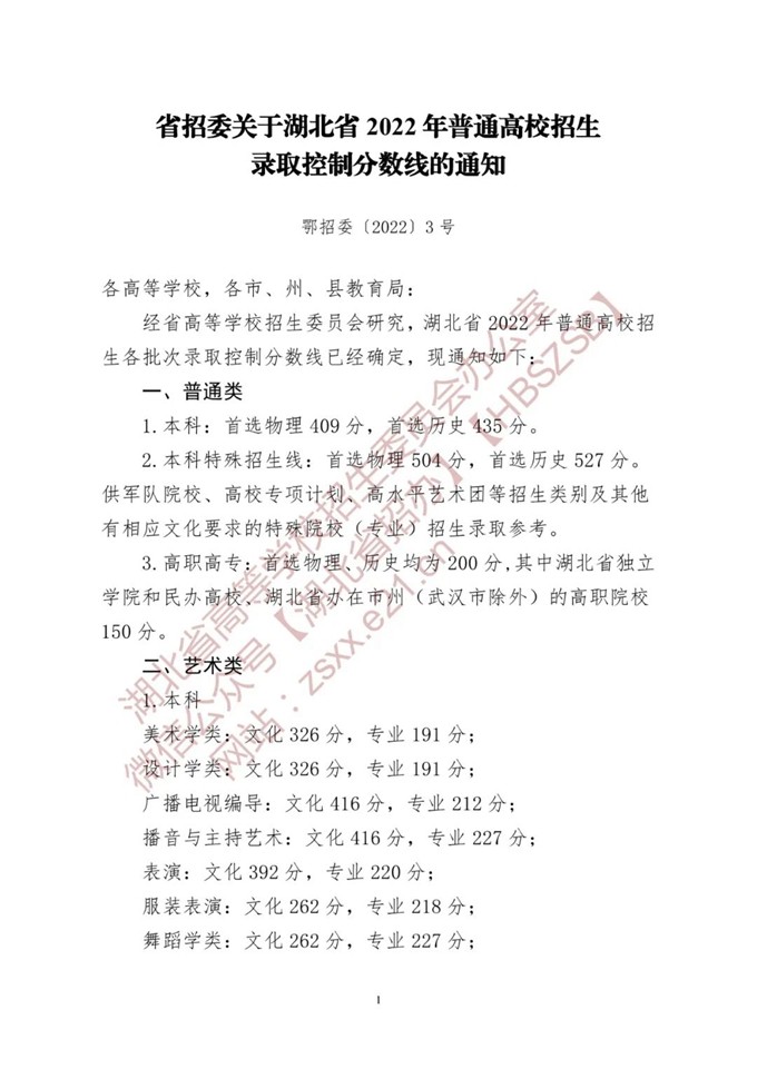 據(jù)悉湖北省2022年普通高校招生錄取控制分?jǐn)?shù)線已經(jīng)公布如下: