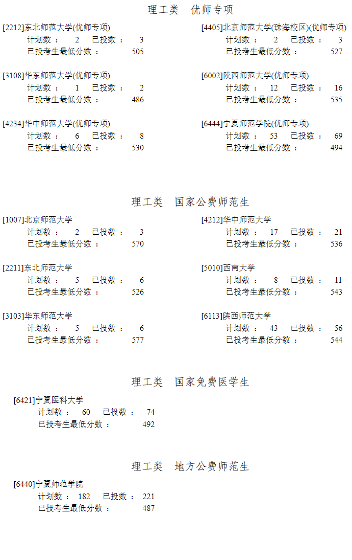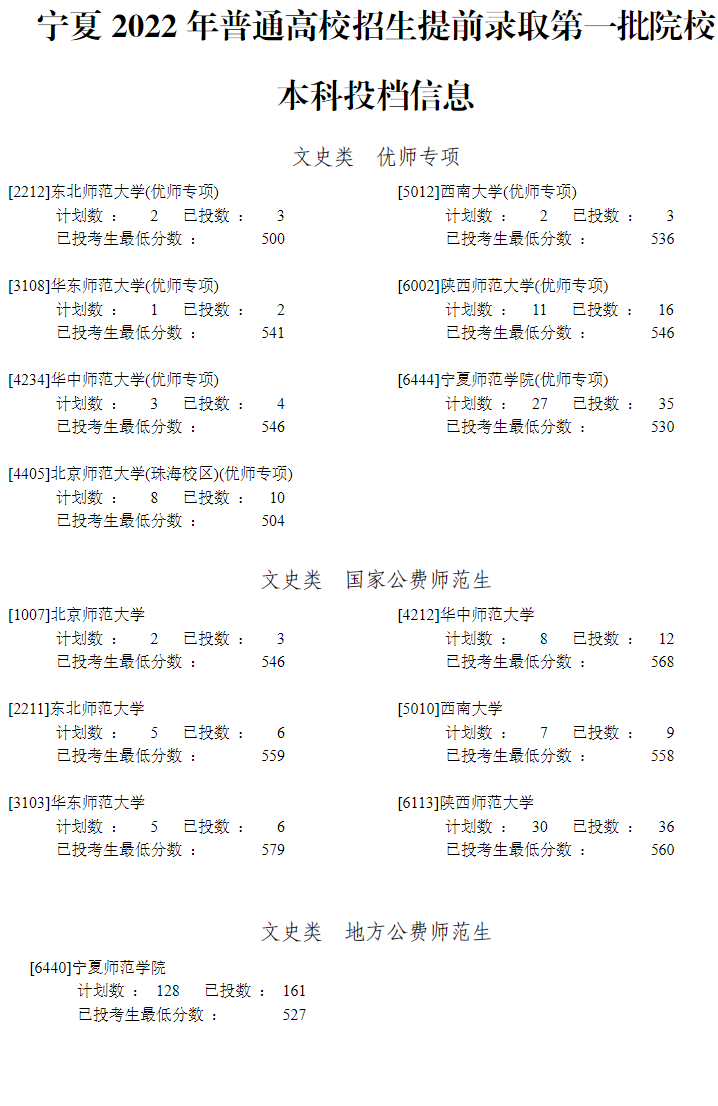 寧夏自治區(qū)2022年普通高校招生提前錄取一本投檔信息公布