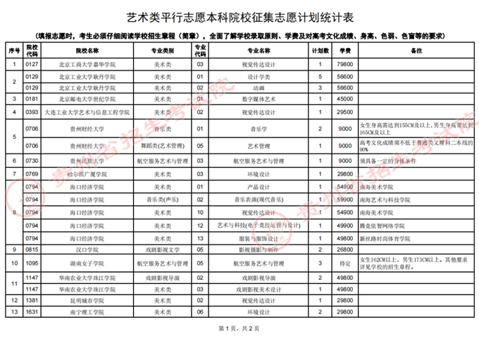 貴州省2022年高考藝術(shù)類平行志愿本科院校第4次征集志愿的說明