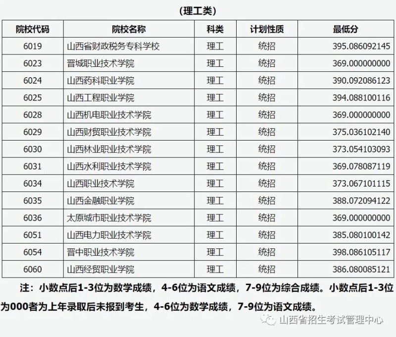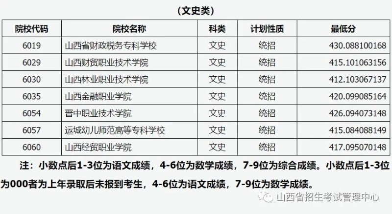 山西省2022年普通高校招生高本貫通批院校投檔最低分公布