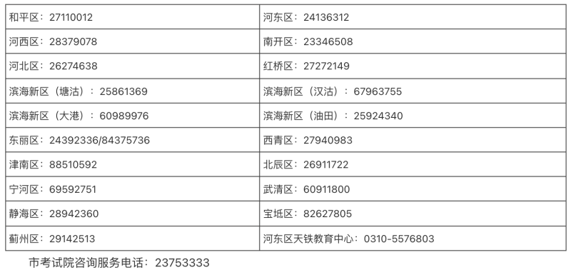 各區(qū)咨詢服務(wù)電話見下表: