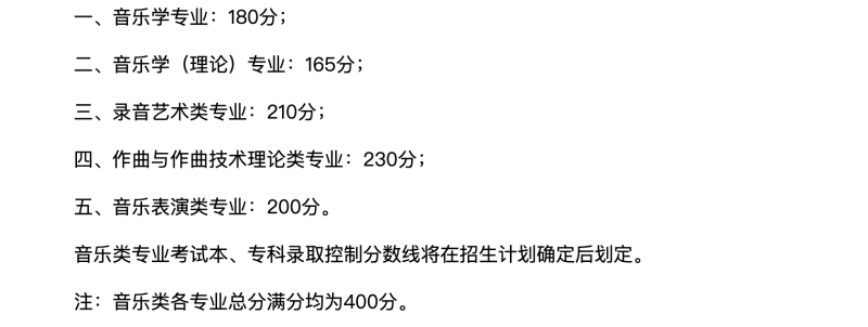 現(xiàn)將四川省2022年普通高等學(xué)校招生音樂類專業(yè)考生參加招生學(xué)校單獨組織專業(yè)考試的資格線公布如下: