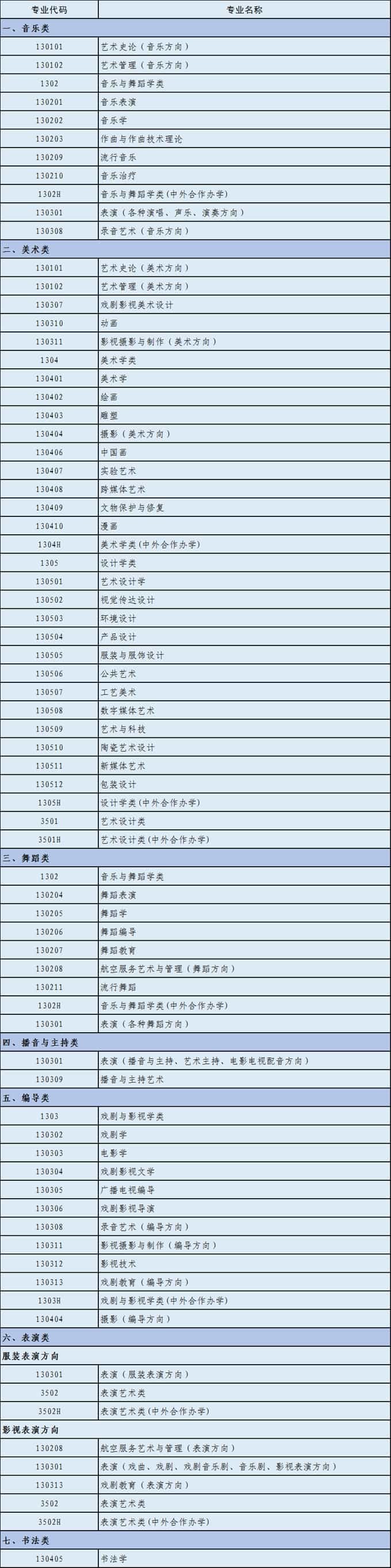 2023年藝術(shù)類專業(yè)省級(jí)統(tǒng)考涵蓋本科專業(yè)一覽表