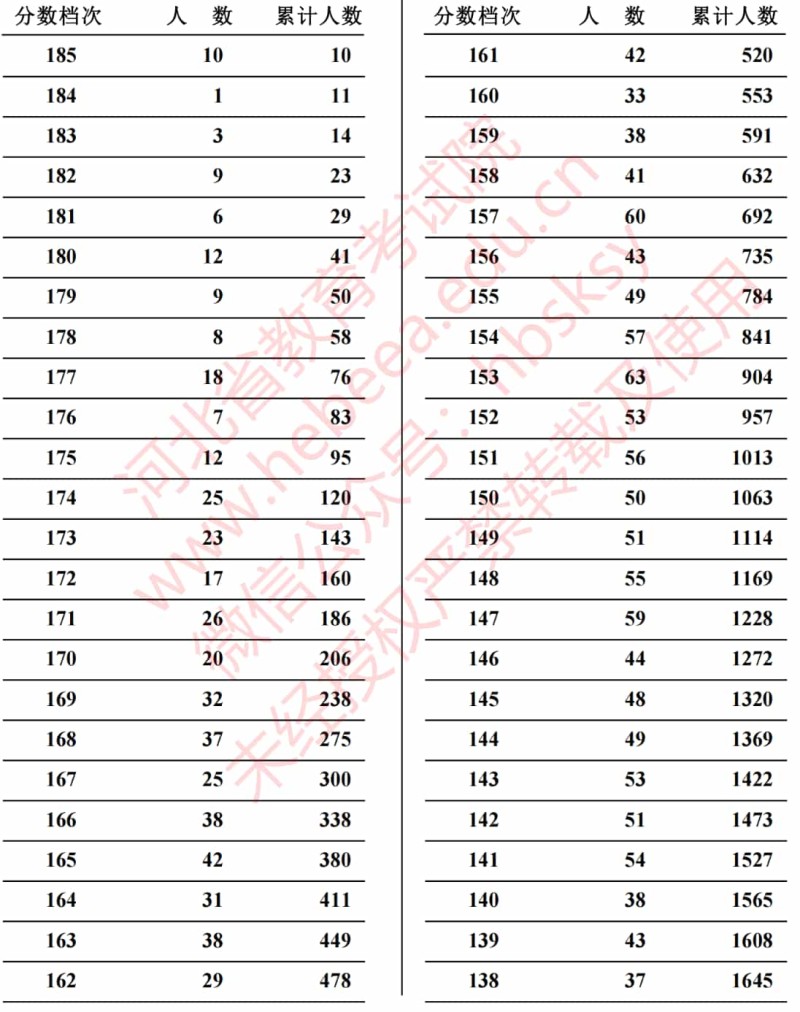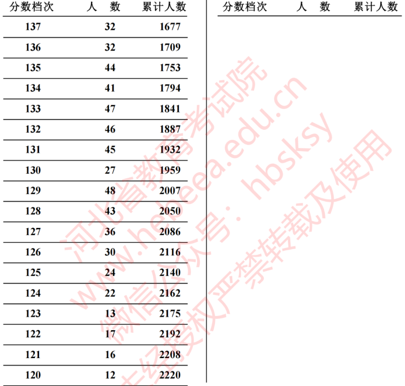 河北省2023年高考招生器樂(lè)類(lèi)統(tǒng)考成績(jī)一分一段統(tǒng)計(jì)表