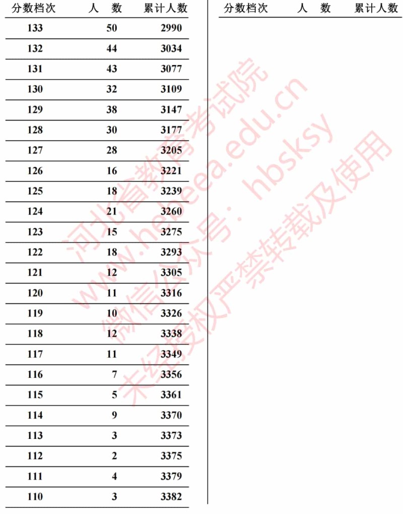 河北省2023年高考招生舞蹈類統(tǒng)考成績(jī)一分一段統(tǒng)計(jì)表