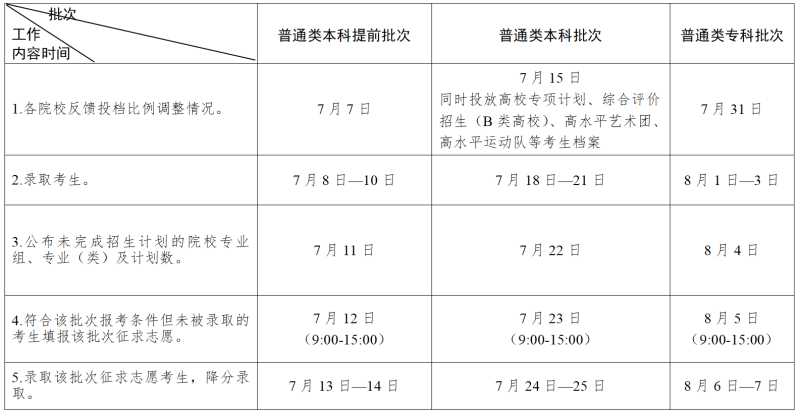 各科類錄取工作具體時間安排詳見附件。