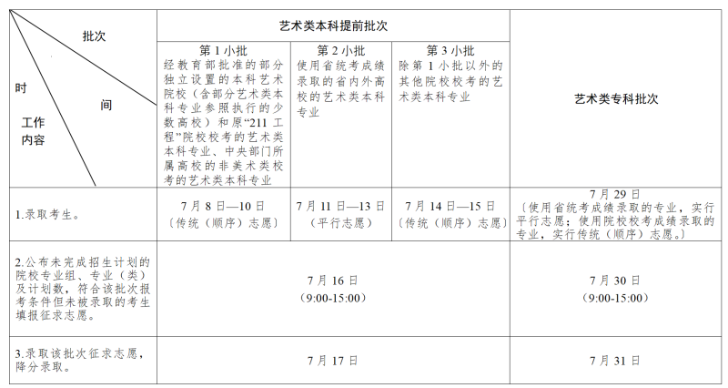 本科提前批次:7月8日—17日錄?。ㄆ渲兴囆g類分為3小批);