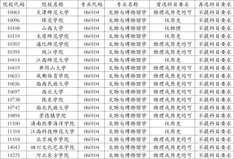 文物與博物館學(xué)專業(yè)大部分高校首選科目是物理或歷史,再選科目要求不限!部分學(xué)校有自己的要求,具體情況請同學(xué)們以各省招生的學(xué)校和專業(yè)實(shí)際公布要求為準(zhǔn)。下圖僅供同學(xué)們參考。