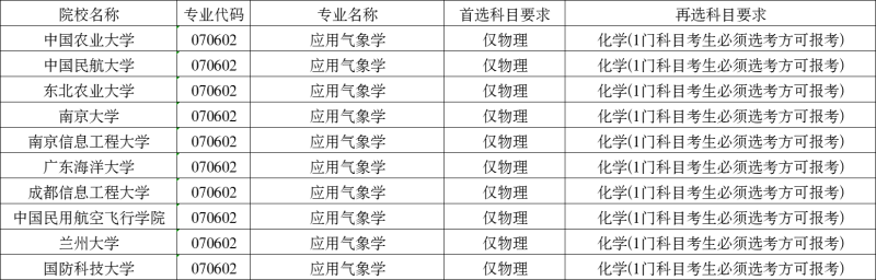 應(yīng)用氣象學(xué)專業(yè)高考報(bào)考選考科目要求