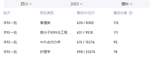 四川大學(xué):本科一批次錄取,最低分為635分,比電子科技大學(xué)低20分。