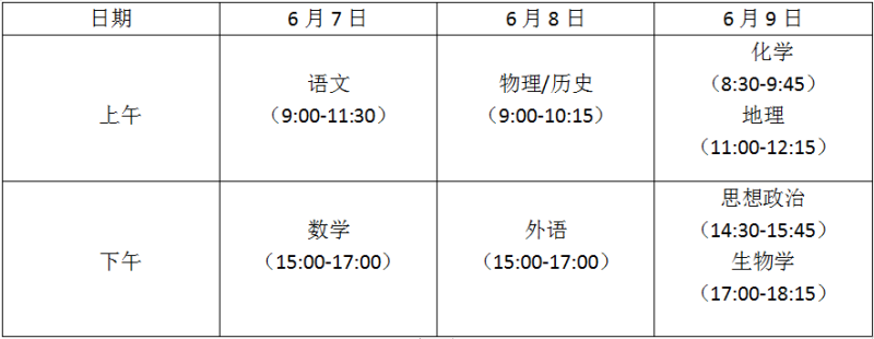 (二)考試時(shí)間。全國(guó)統(tǒng)考科目由教育部命題,按教育部規(guī)定時(shí)間組織考試。選擇性考試科目由廣西壯族自治區(qū)自主命題,每門(mén)考試時(shí)長(zhǎng)均為75分鐘,與全國(guó)統(tǒng)考科目的考試同期安排,如全國(guó)統(tǒng)考科目有調(diào)整,選擇性考試科目的考試安排相應(yīng)調(diào)整。具體考試時(shí)間安排如下: