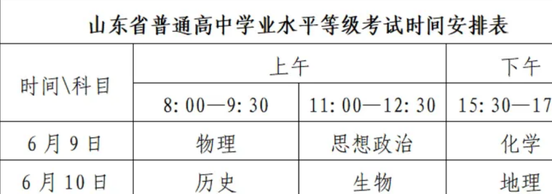 (二)普通高中學(xué)業(yè)水平等級考試。普通高中學(xué)業(yè)水平等級考試由我省自主命題,考生從思想政治、歷史、地理、物理、化學(xué)、生物等6個(gè)科目中選報(bào)3科參加考試。考試時(shí)間安排在6月9日—10日,每科考試時(shí)間為90分鐘。