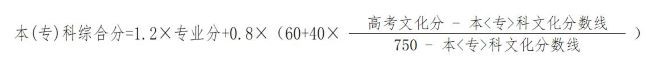 綜合分1=高考文化分×50%+專業(yè)分×2.5×50%,適用于音樂類、舞蹈類、表(導)演類、美術與設計類、書法類專業(yè)。