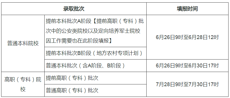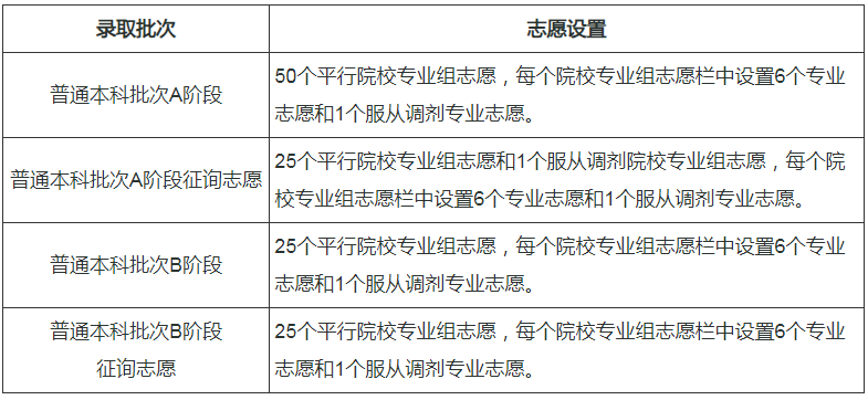 普通本科批次分為A、B兩個(gè)階段,均實(shí)行平行志愿投檔方式。